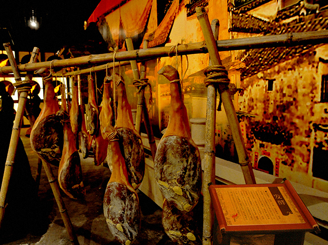 中国火腿博览馆是中国火腿行业第一个博览馆,以丰富的图文与实物,详细地介绍了火腿的历史人文、生产工艺、商业流通、食用与保存知识,重点展示了金华火腿“色、香、味、益、形”五大特色,以及金华火腿在中国美食中的应用、世界各国知名火腿、中国其他火腿品牌等内容,兼具知识性、趣味性、互动性。
